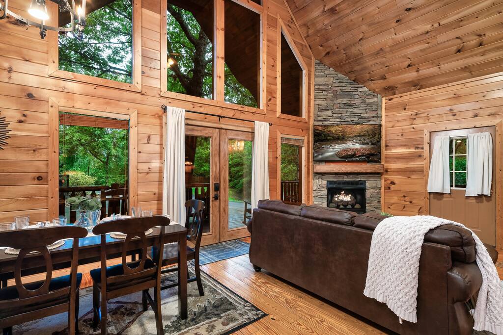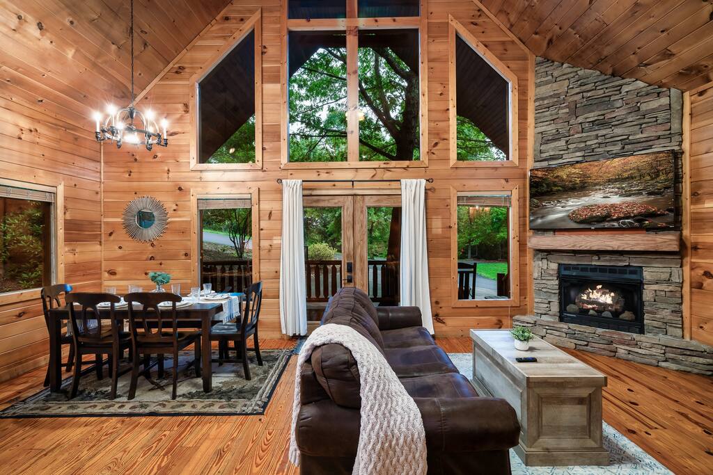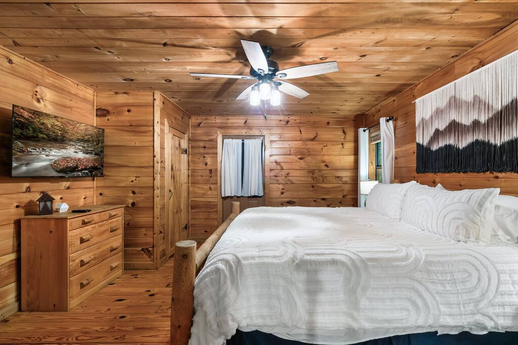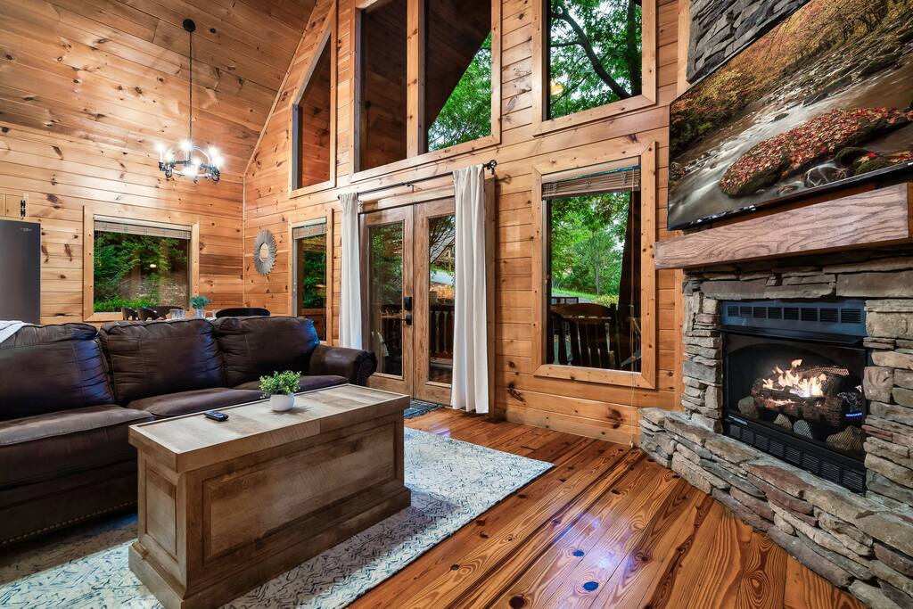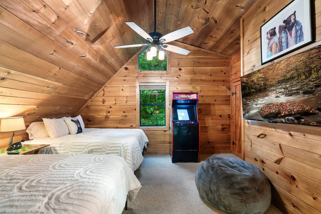 This cozy retreat offers a peaceful escape nestled on a spacious 0.7-acre lot within a quiet, rural cabin community. Surrounded by nature, you’ll enjoy the serenity of the Smokies while still being close to all the action and attractions. Unplug, unwind, and savor the tranquility of your mountain getaway! ⭑ Location ⭑ ⋑ Pigeon Forge Parkway 5 miles ⋑ The Island (restaurants and fun) 5 miles ⋑ Tanger Outlets (shopping) 5 miles ⋑ Gatlinburg 12 miles ⭑ Neighborhood ⭑ Located in a quiet, residential neighborhood surrounded by scenic mountain views. It is serene and picturesque with no steep roads. ⭑ Living Room⭑ ⋑ Soaring windows showcase the mountain scenery ⋑ Spacious open floor plan connected to dining area and kitchen ⋑ Brick gas fireplace with 65” Roku TV ⋑ Plush couch and lounge chair for comfy seating ⭑ Full Kitchen ⭑ ⋑ Fully equipped kitchen, perfect for whipping up breakfast before heading out to one of the many activities close by ⋑Drip coffee maker and K cup coffee maker ⭑ Dining Area ⭑ ⋑ Seating for 6 for a comfortable dining experience ⭑ Master Bedroom ⭑ ⋑ King bed ⋑ Soaking tub (no jets) ⋑ Ceiling fan ⋑ 50" Roku TV ⋑ Private bathroom ⋑ Direct access to the private screened porch with Hot Tub. ⭑ Open Loft ⭑ ⋑ Two queen beds (sleeps four) ⋑ Ceiling fan ⋑ 55" Roku TV for entertainment ⋑ Arcade machine to keep the kids (or the kid in you) busy ⋑ Private bathroom ⭑ Private Hot Tub Room ⭑ ⋑ Private screened porch with door ⋑ Four-person hot tub ⋑ String lights create a romantic atmosphere ⭑ Bathrooms ⭑ ⋑ Two full bathrooms with showers** ⋑ Fresh towels provided ⋑ Stocked with hygiene essentials ⋑ Hair dryers provider ** Please be aware that the shower space is compact. We recommend it for those comfortable with a snug fit, especially if you’re on the taller or larger side. ⭑ Outdoor Area ⭑ ⋑ Porch with four rockers ⋑ Charcoal grill (charcoal not provided) ⋑There is a Ring camera at the front door. ⋑ The cabin is also monitored by a smoke/noise detector.
