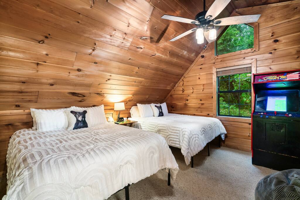 Experience the comfort of Bear’s Landing — a spotless, owner-managed cabin just minutes from the Parkway in Pigeon Forge. Enjoy a peaceful escape that’s family-friendly and close to all the fun! 🛏️ King + 2 Queen beds 💦 Private hot tub located off of the master bedroom 🎮 Arcade loft 🔥 Gas fireplace 📺 65" smart TV 🎲 Board games and arcade machine 🪑 Wraparound porch w/ rocking chairs ☕ K-Cup & drip coffee makers